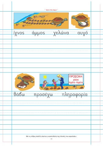 “ Ίχνη στην άμμο ” ί νο ά ο ε ώνα αυ ό ΠΡΟΣΟΧΗ χελώνα Καρέττα - Καρέττα ά ω π οσέ ω π ο ο ία Με τις λέξεις κλειδιά γίνεται η ανασύνθεση της πλοκής του κεφαλαίου.