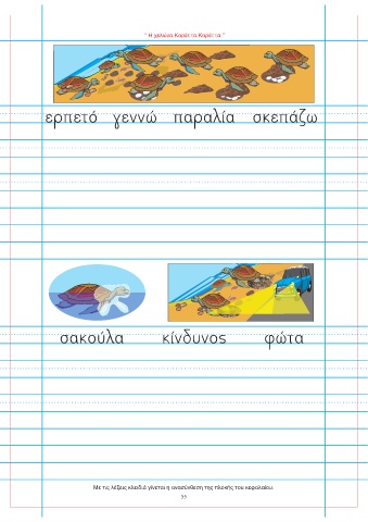 “ Η χελώνα Καρέττα Καρέττα ” ε πετό εννώ πα α ία σ επά ω σα ού α ίν υνο ώτα Με τις λέξεις κλειδιά γίνεται η ανασύνθεση της πλοκής του κεφαλαίου.